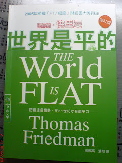 這次的讀書心得報告,我選擇「世界是平的」這本書,看完這本書後,啟發還蠻多的這本書中的「競賽場正在剷平」最為重要,剛看到這句話,還看不太懂代表的是甚麼意思,原來所指的是因為有了電腦,網路,和一些軟體,使得更多人在平等的立足點上合作與競爭,以前,一項新研發的技術或知識,要傳播開來不容易,現在有了網路,透過網路,每個人都能輕易的取得或分享,而決定一個人的競爭力就在於你擁有多少的知識,我們就必須充分利用這些資源來充實自己,當然你也要知道如何使用。